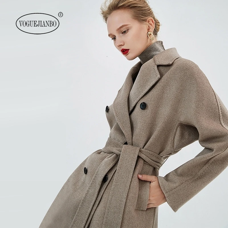 Hot Promo 2019 new woolen coat classic style camel water ripple double-faced cashmere coat casacos coats vest