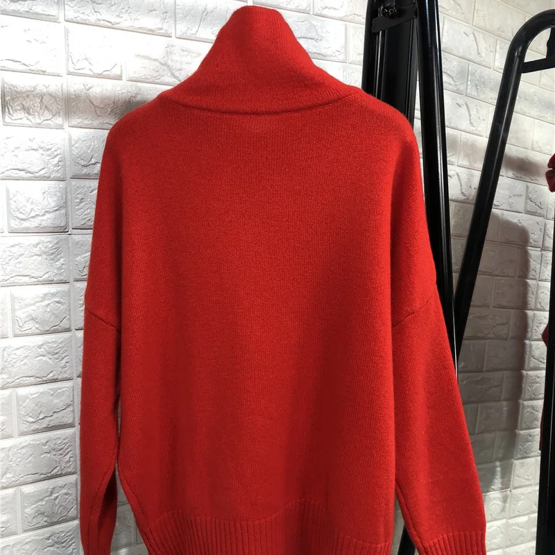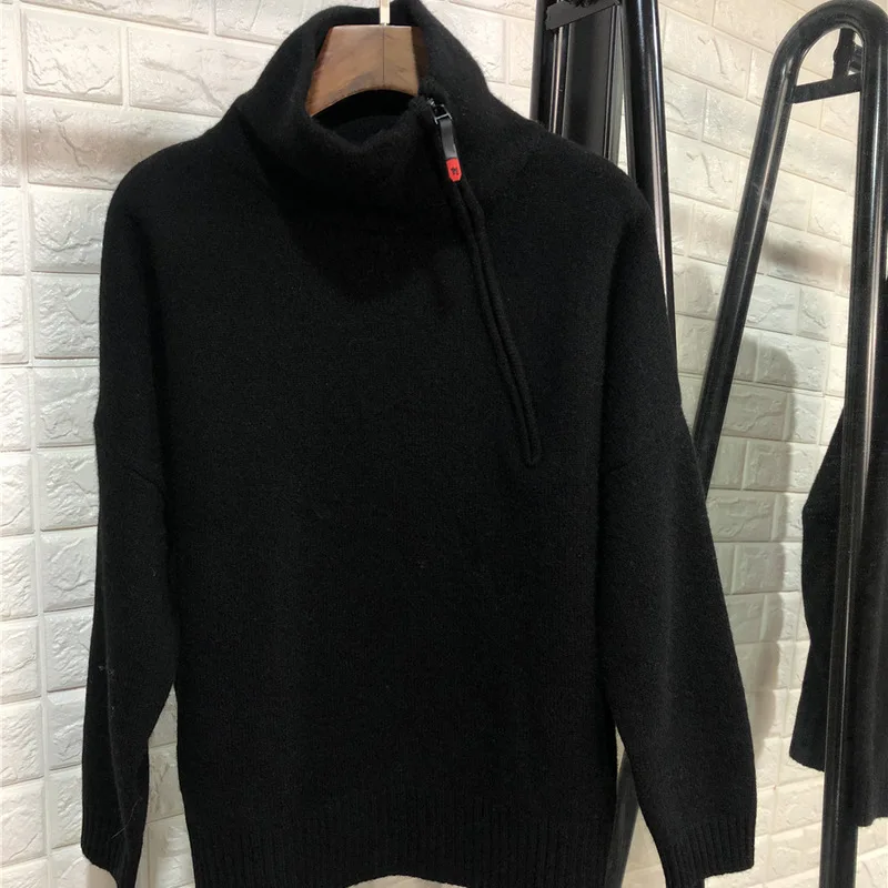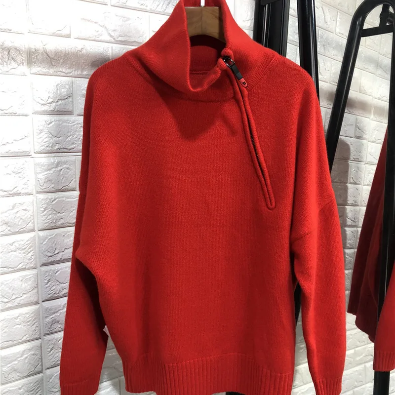Hot Promo Women autumn winter wool sweater turtlenck long sleeve zipper side loose style Korean knitted pullo