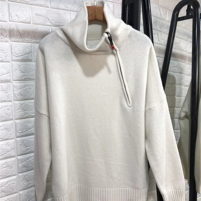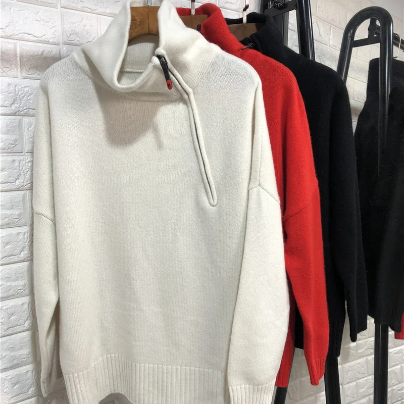 Buy Women autumn winter wool sweater turtlenck long sleeve zipper side loose style Korean knitted pullo
