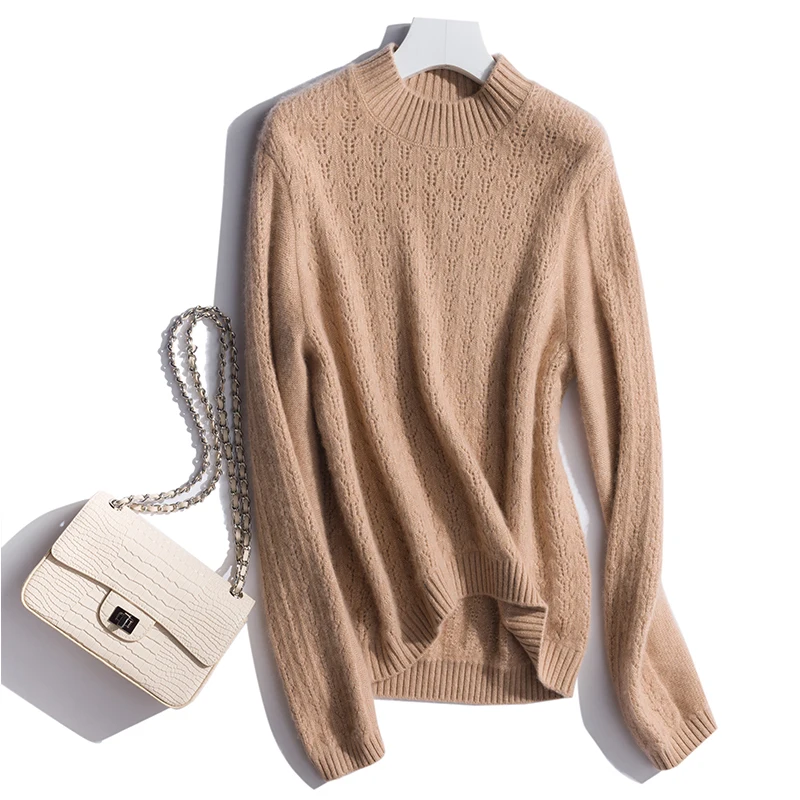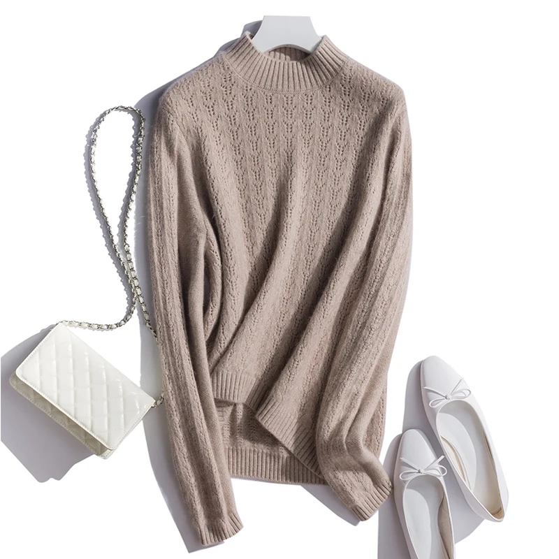 Cheap LHZSYY 2019Autumn Winter New Women's 100% Pure Wool Sweater Half-High Collar Loose Knit Bottoming S