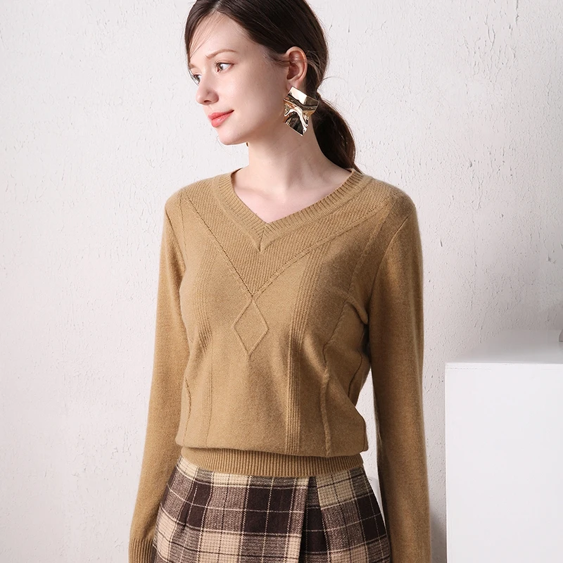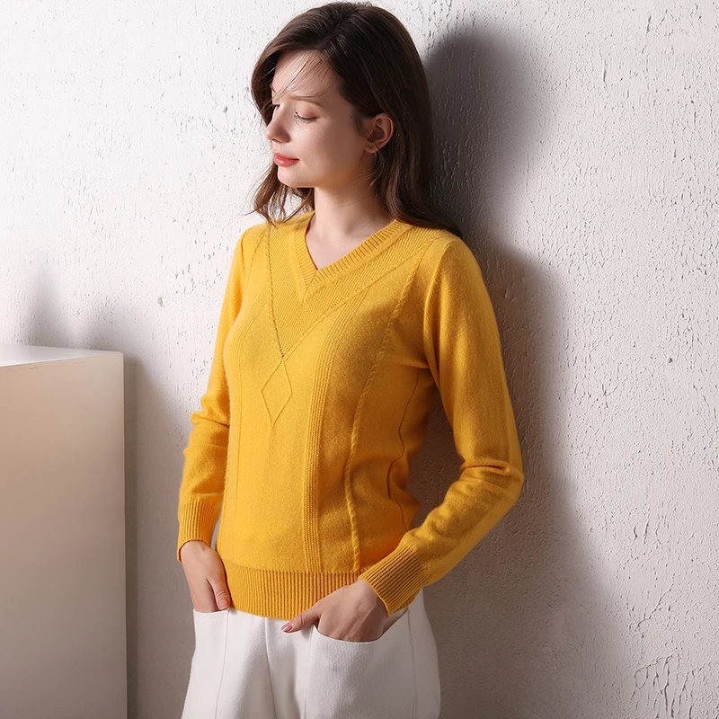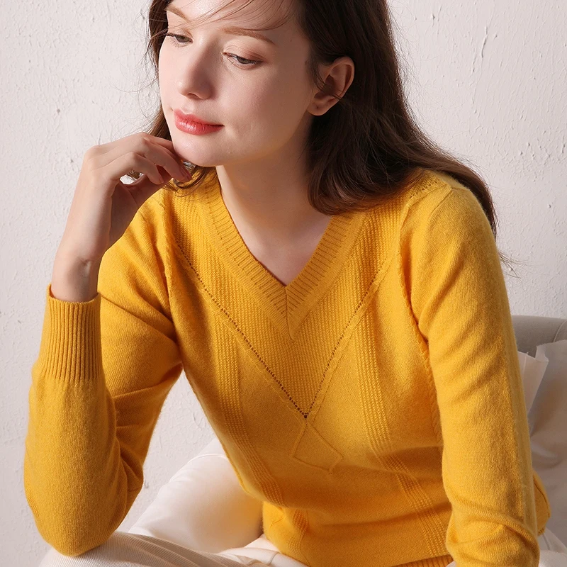 Hot Promo LHZSYY 2019Autumn Winter New Women' Pure Wool Sweater V-neck Slim Knitt Bottoming Shirt High-end Wa