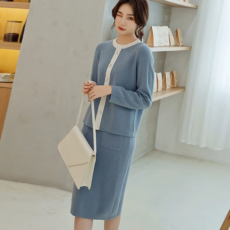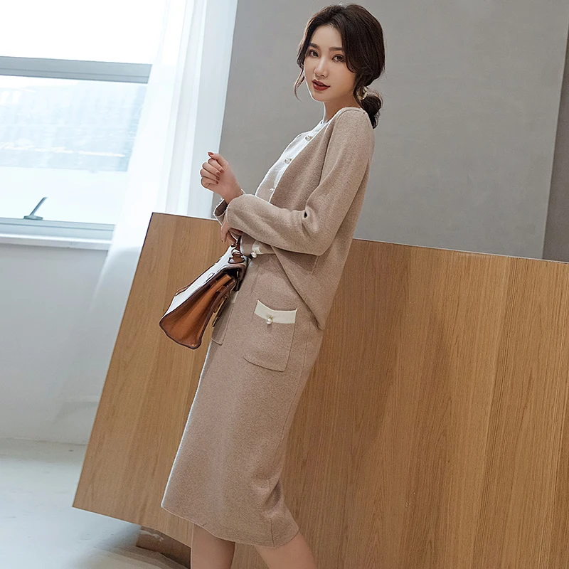 New Arrival New style cashmere sweater women pullover thicken long sleeve O-neck female pullover and skirt tow-