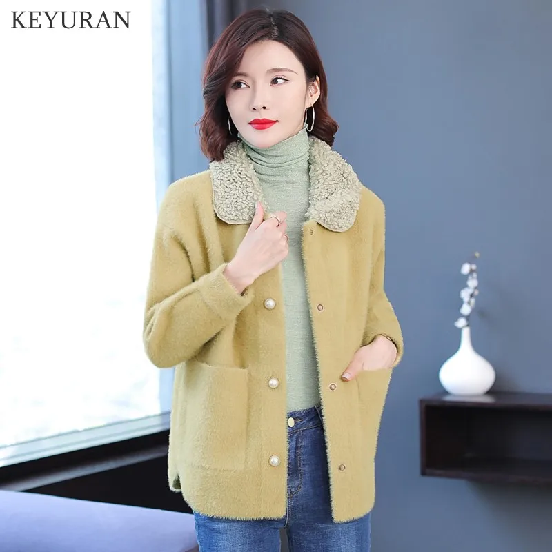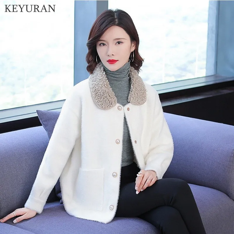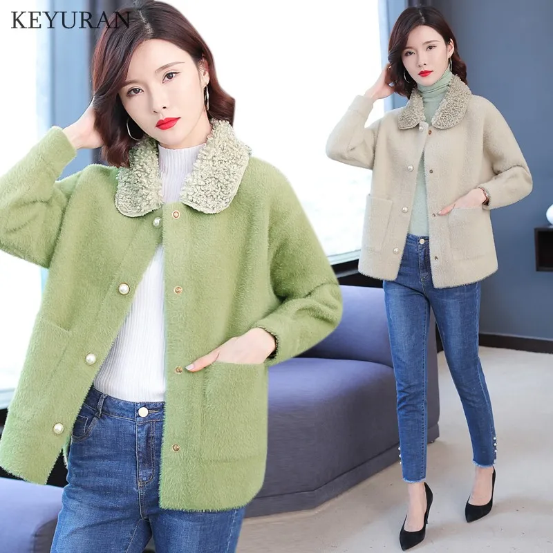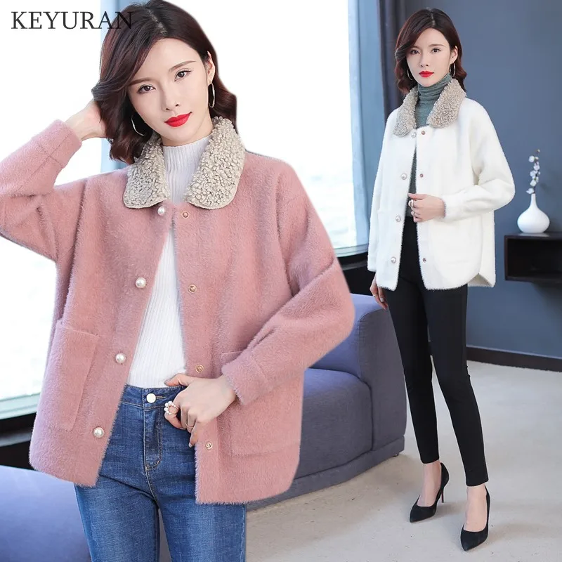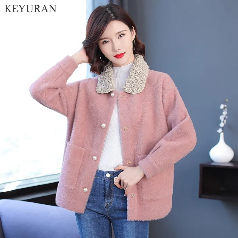 Big Discount New Women's Thickening Sweater outerwear Female Long Sleeve Mink Cashmere Cardigan Warm Single-brea