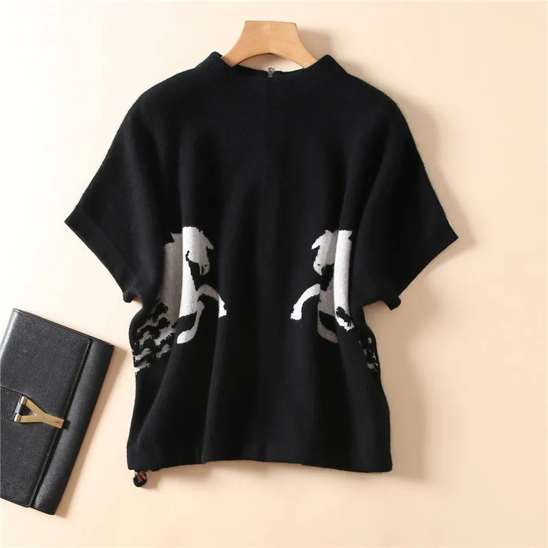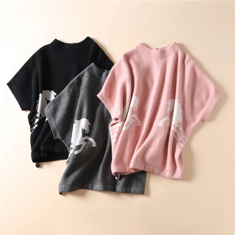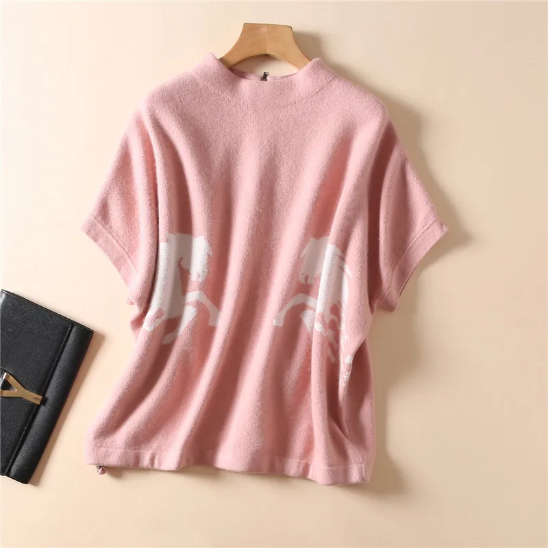 Hot Product New women s clothing fall shoulder cashmere blended knitted blouses with short sleeves F9006