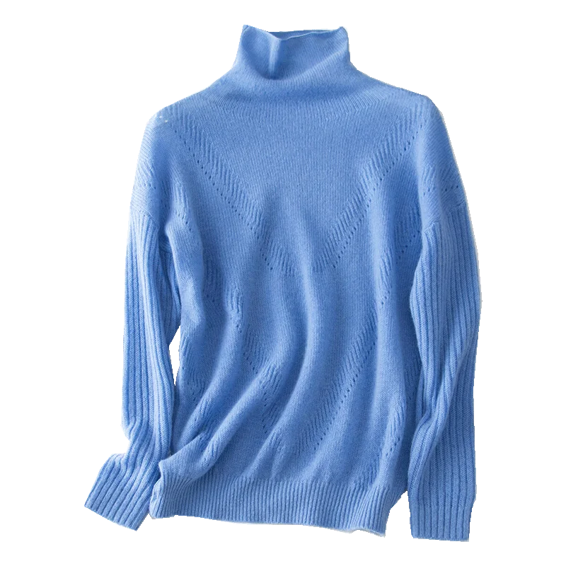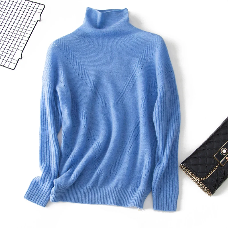 Hot Product Women's Cashmere Sweater Hollow Out Turtleneck Pullovers Solid Office Lady Warm Knitted Sweater for