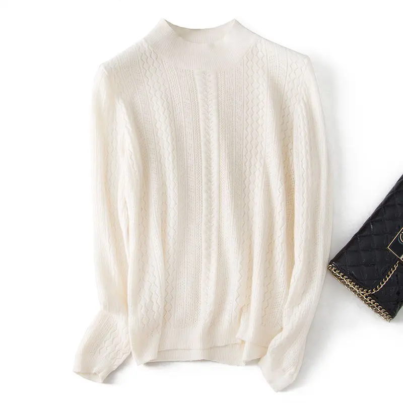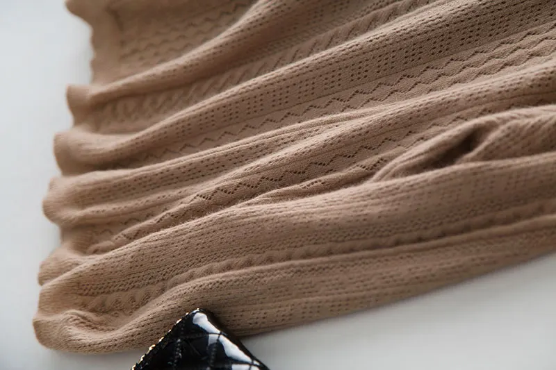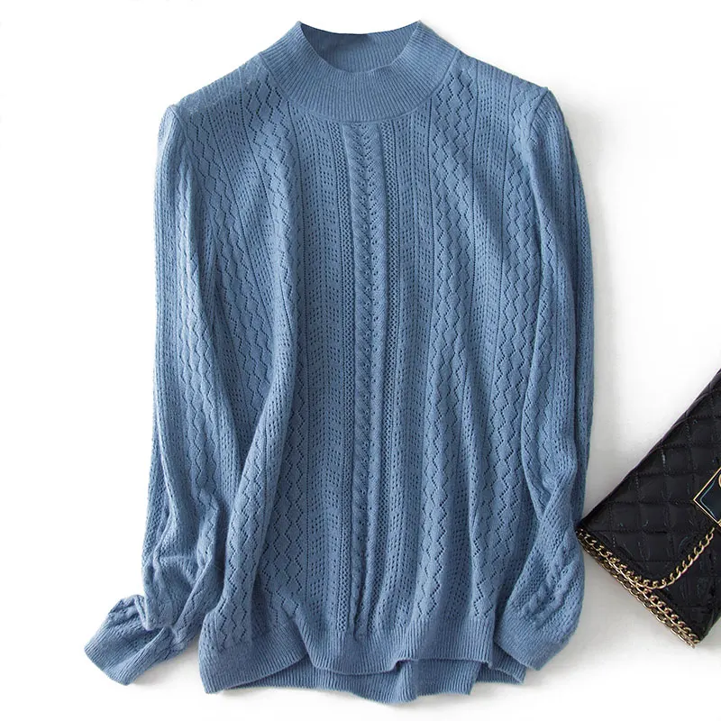Promo Shuchan Hollow Out Thin Womens Sweaters 90% Wool+10% Cashmere Cute Sweater O-Neck Pullovers White B