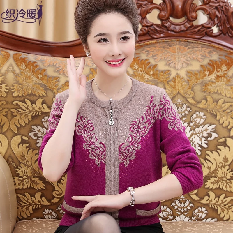 Best Price 2019 middle-aged and elderly women 50 years old 60 mothers sweater clothes cardigan jacket old woma