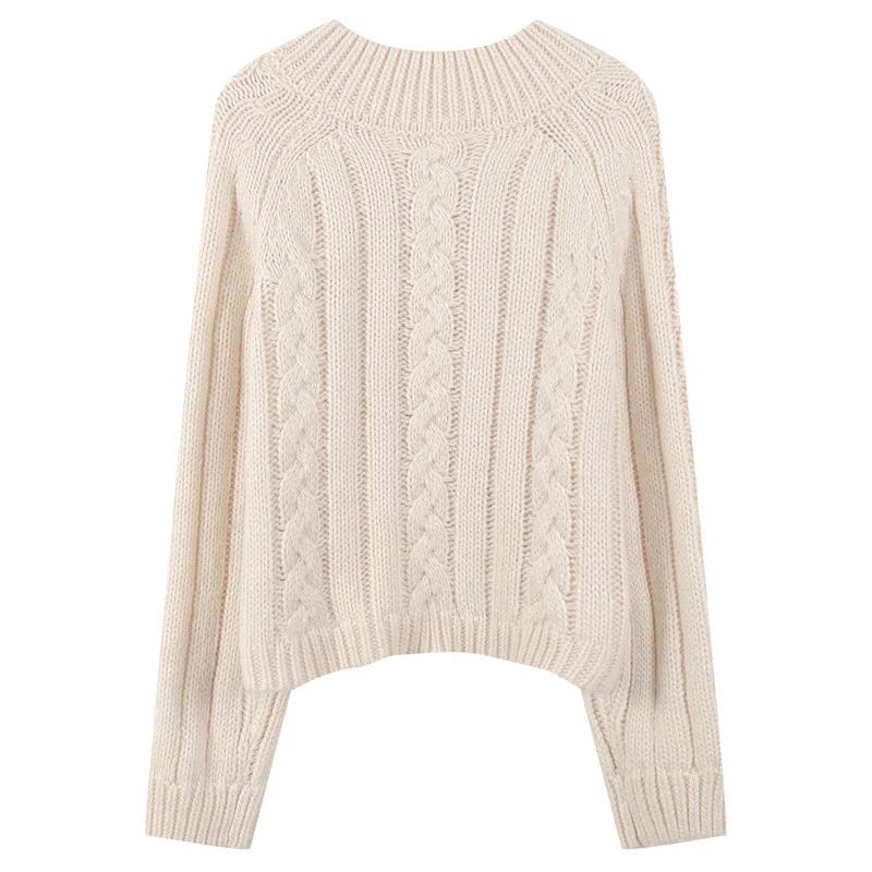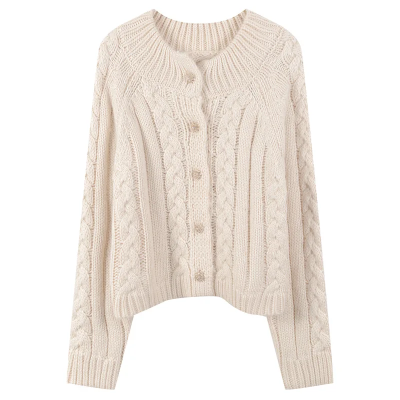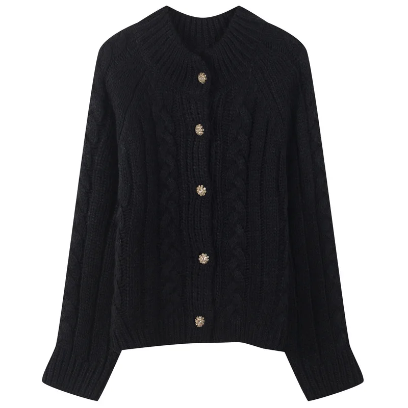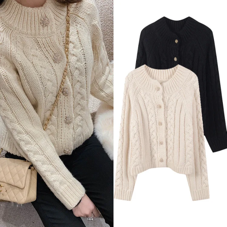 Best Price New twist Rhinestone button short cardigan Mock Neck Sweater slim versatile top girl