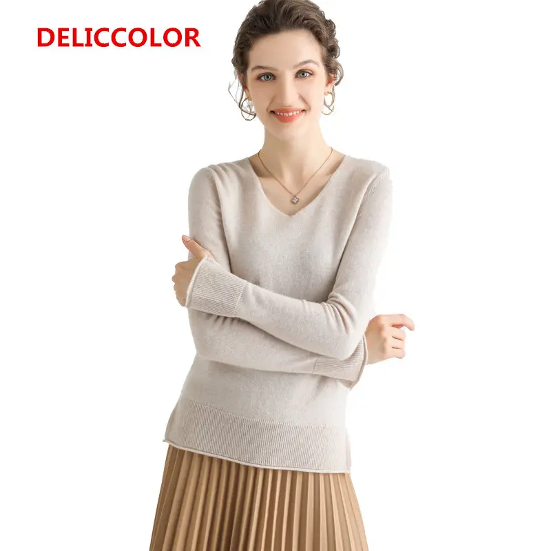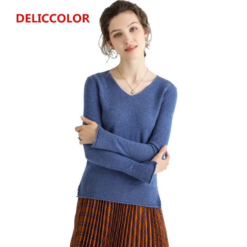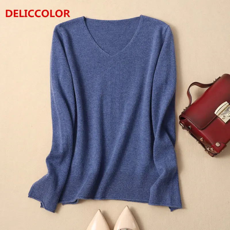 Big Discount 2019 new style cashmere lady's sweater V collar slim solid bottoming cashmere sweater Long-sleeved
