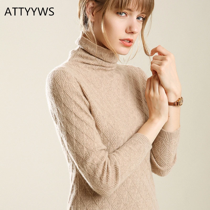 Big Sale ATTYYWS 2018 Autumn and winter new versatile slim short high neck sweater women's long sleeve knit