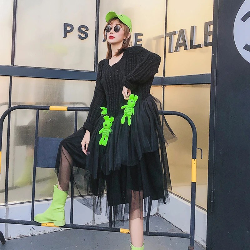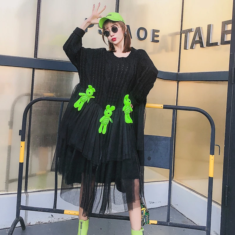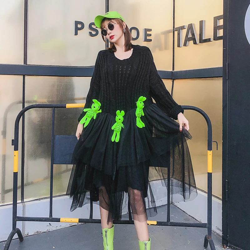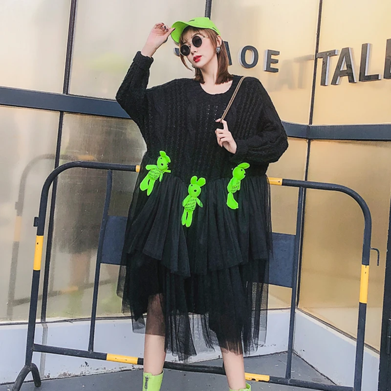 Belum ada Komentar untuk "Big Discount CHICEVER Patchwork Mesh Cartoon Knitted Sweater Women O Neck Long Sleeve Irregular Loose Pullovers "