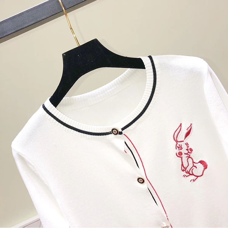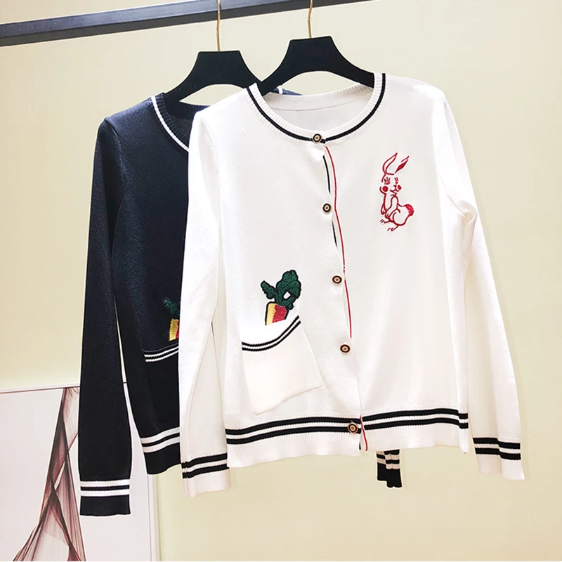 Big Sale Fall 2018 New Korean Rabbit and Radish Embroidery Xiaoxiang Knitted cardigan jacket with thin ice s