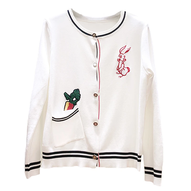 Big Discount Fall 2018 New Korean Rabbit and Radish Embroidery Xiaoxiang Knitted cardigan jacket with thin ice s