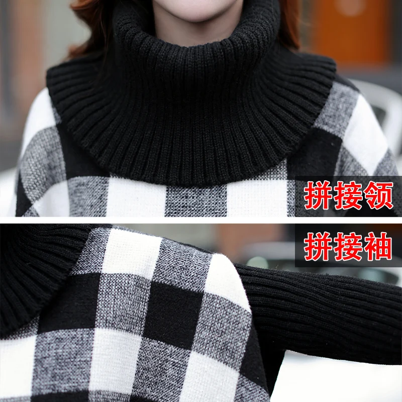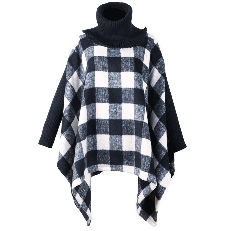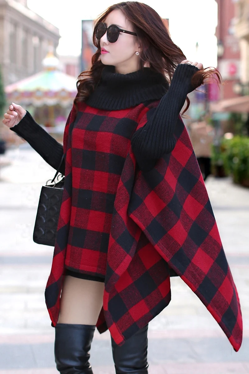 Big Discount New ladies knitted wool cloak high collar plaid shawl winter warm jacket shawl Bat sleeves Woolen o