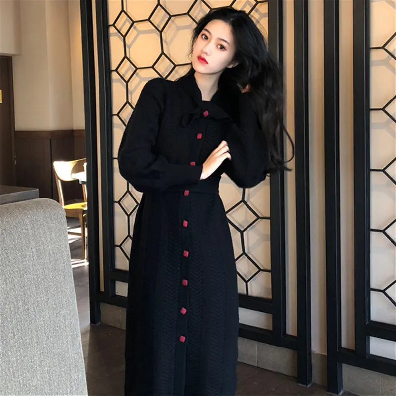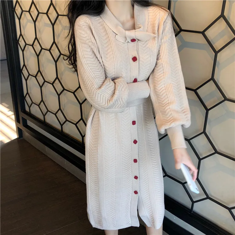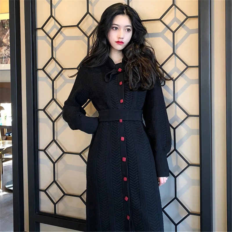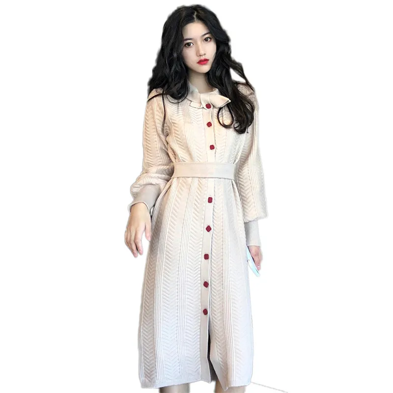 Discount Spring Woman Sweater 2019 New Long Section High Waist Dress Single Breasted Over The Knee Knitwear