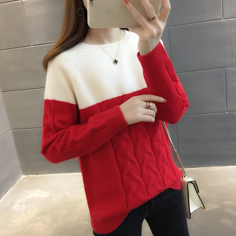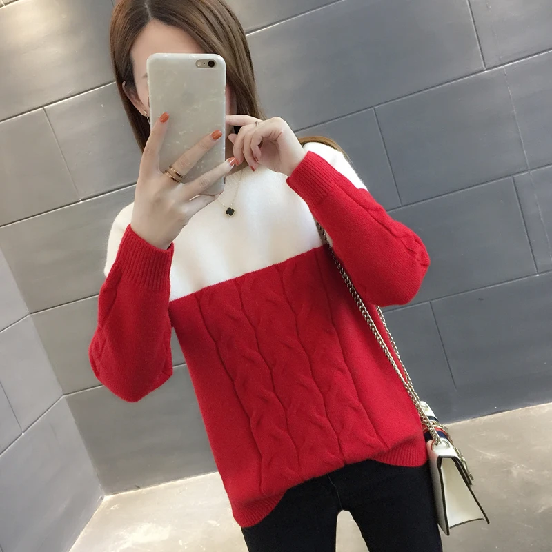 Big Sale 2020 net new wine red sweater female autumn and winter low collar inside the ride loose thickening