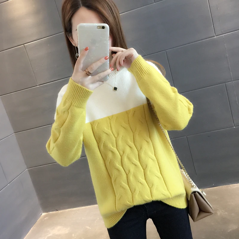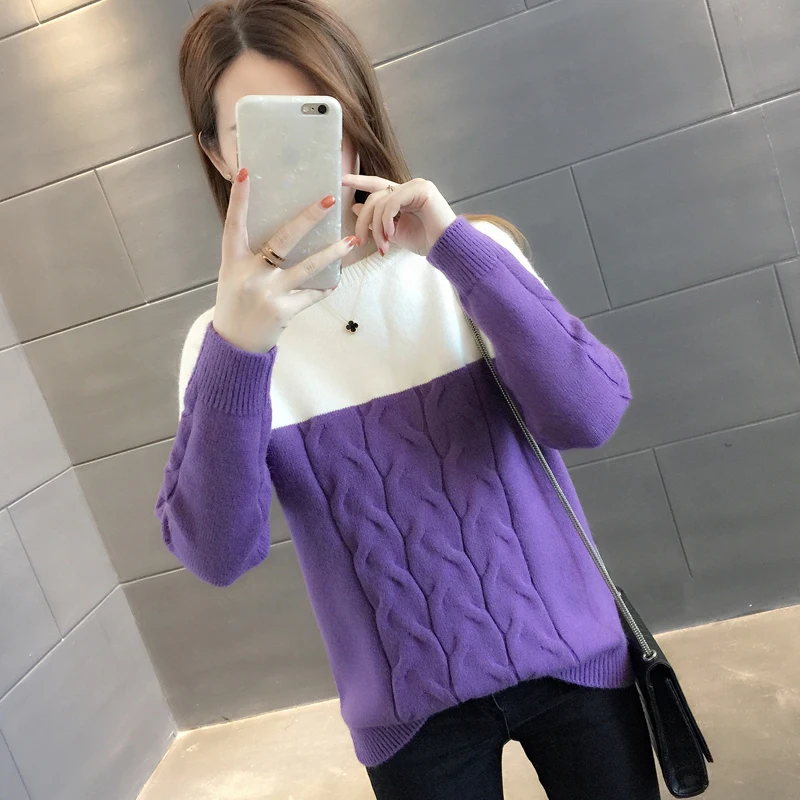 Buy 2020 net new wine red sweater female autumn and winter low collar inside the ride loose thickening