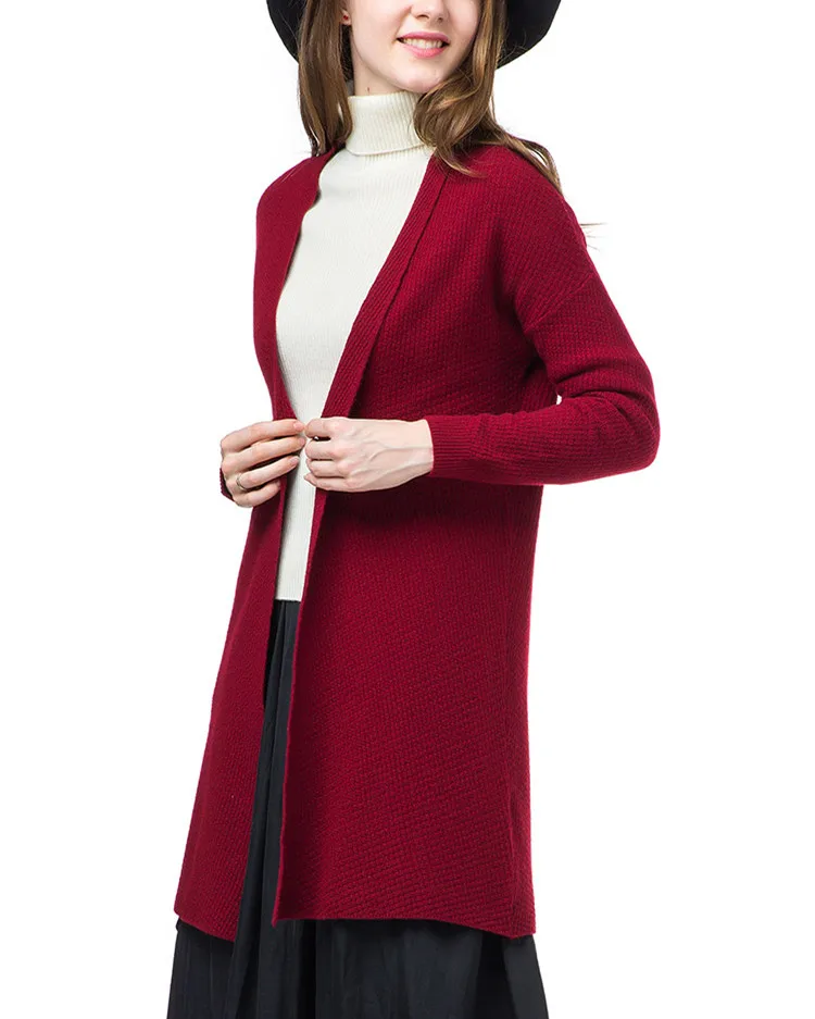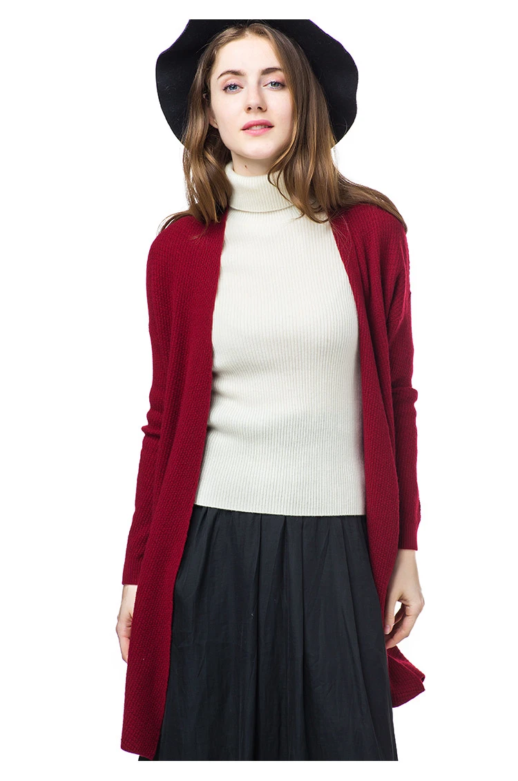 Buy 100%goat cashmere knit women fashion mid-long cardigan sweater coat no buckle claret 2color S-2XL