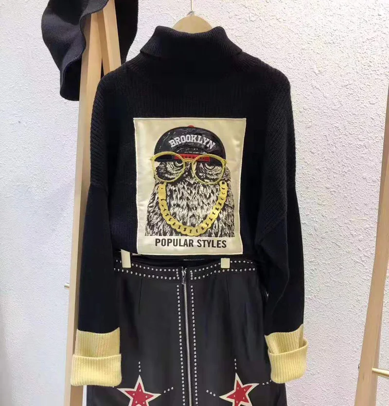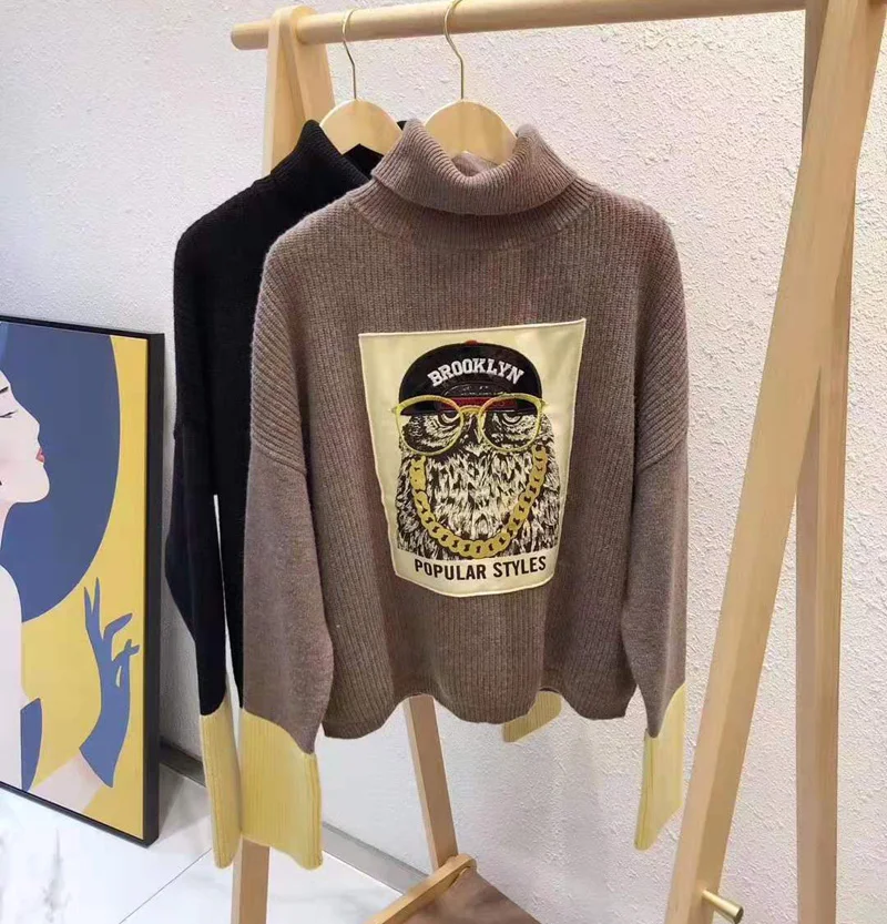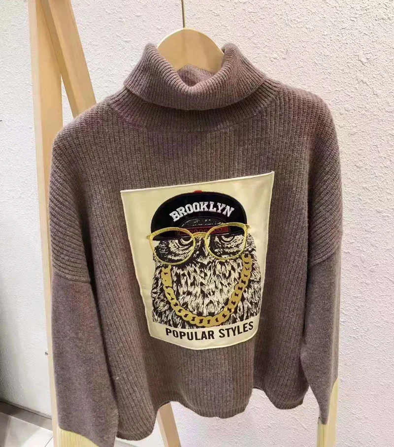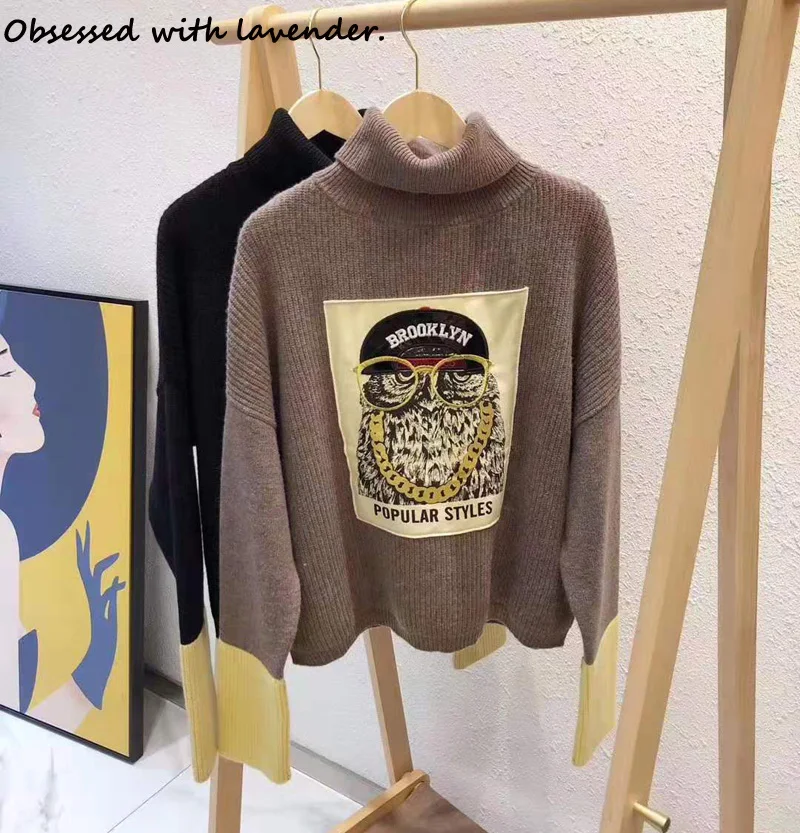 Buy Obsessed with lavender. New cashmere sweater owl pattern fashionable and generous thick delicate em