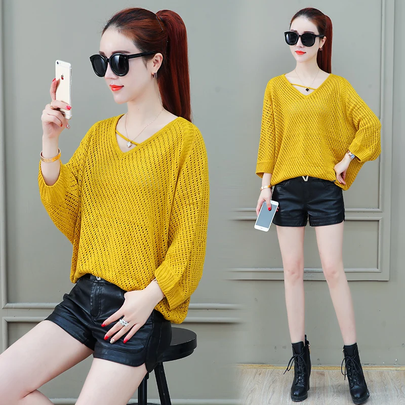 Buy women V-neck collar Knitted sweater long sleeves 2018 autumn new Korean version tunic blouse autumn