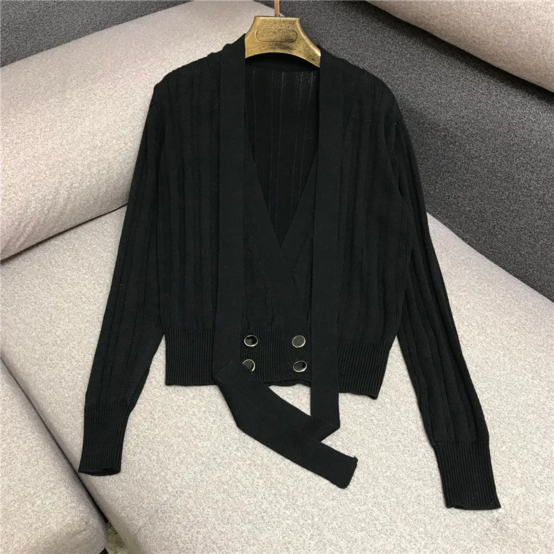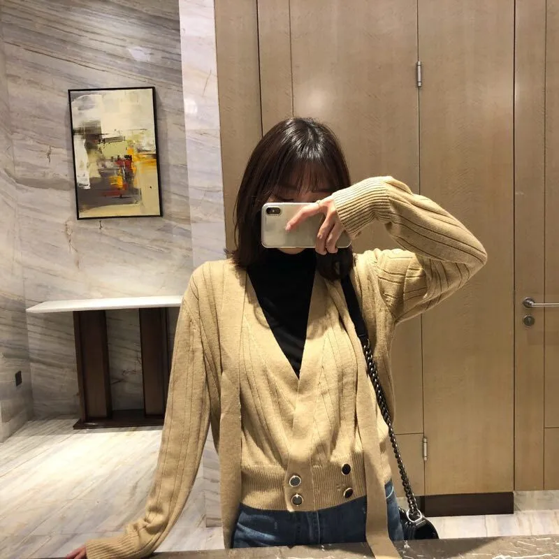 Cheap Jumper Real Standard Full Poncho Women's Sweater 2019 New High Quality Metal Buckle Design V-neck W