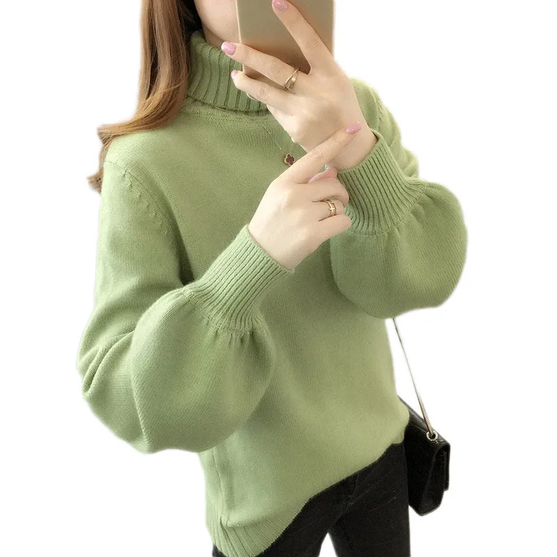 Wholesale Knitted Women Sweater Pullover 2019 Spring Autumn New High-Necked Loose Knitwear Long Sleeve Leisur