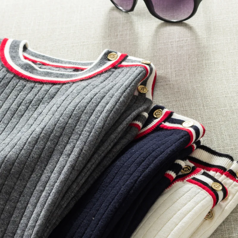 Cheap New winter women's clothing European and American high-end boutique All wool color stripe edge knit