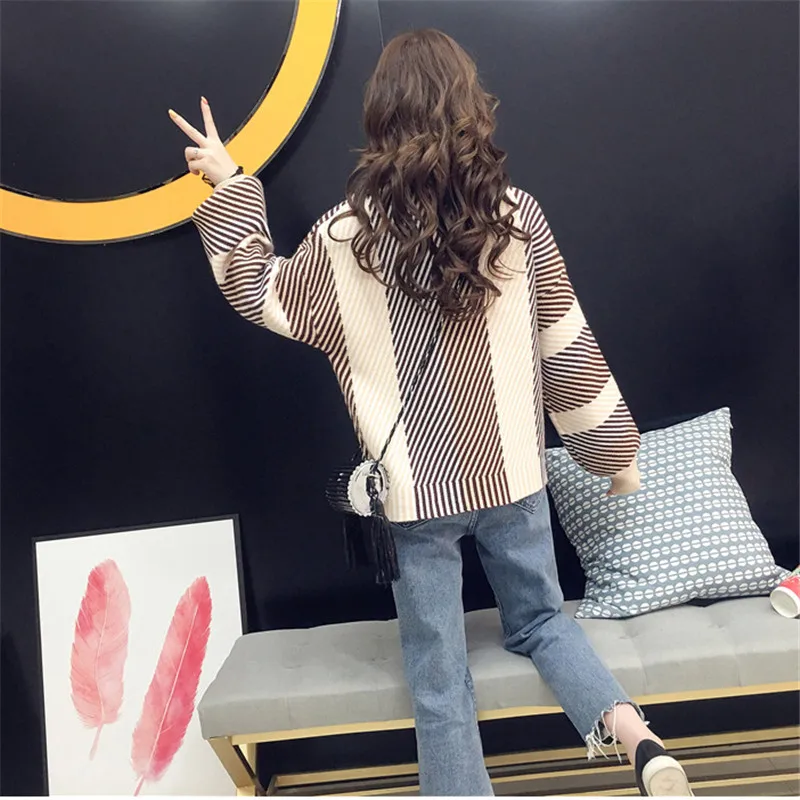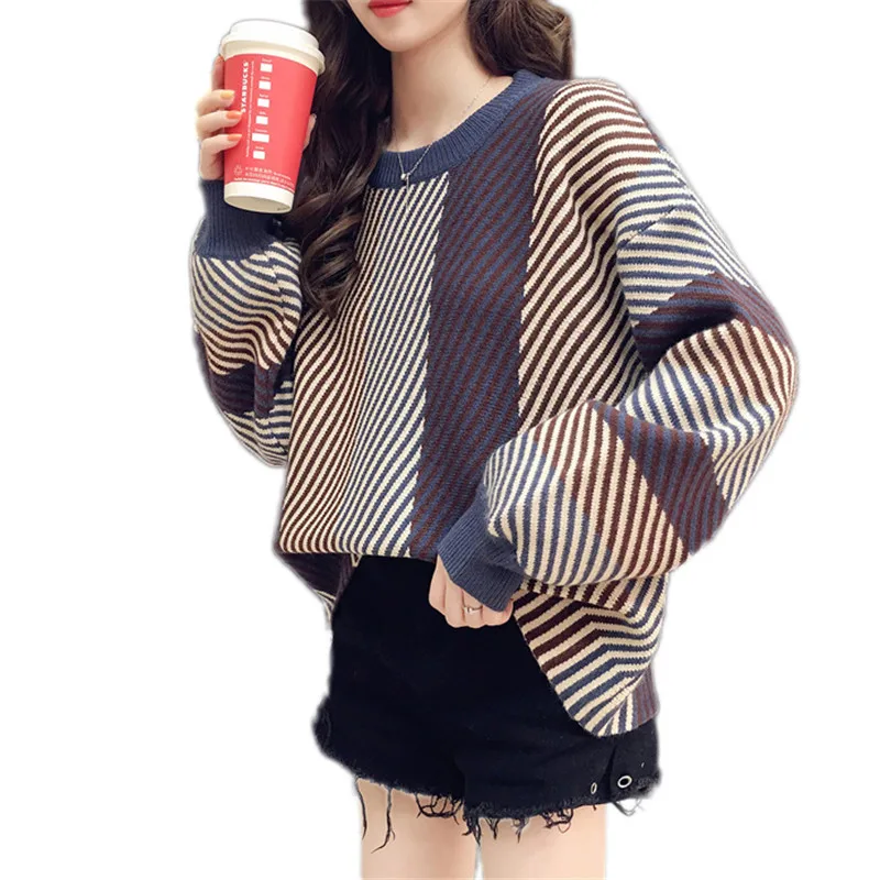 Promo Women Sweater Spring Autumn 2019 New Retro Striped Female Knitwear Sweater Loose Round Neck Knitted