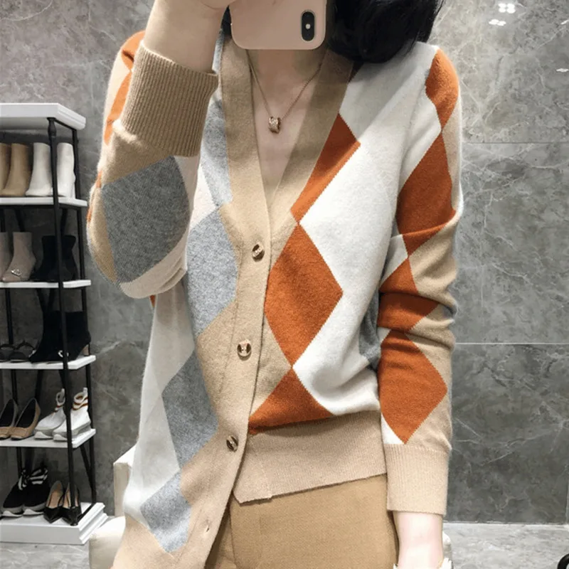 Big Sale Cardigan Feminino Rushed Microfiber Standard 2019 Autumn New Cashmere Sweater Women Contrast Plaid