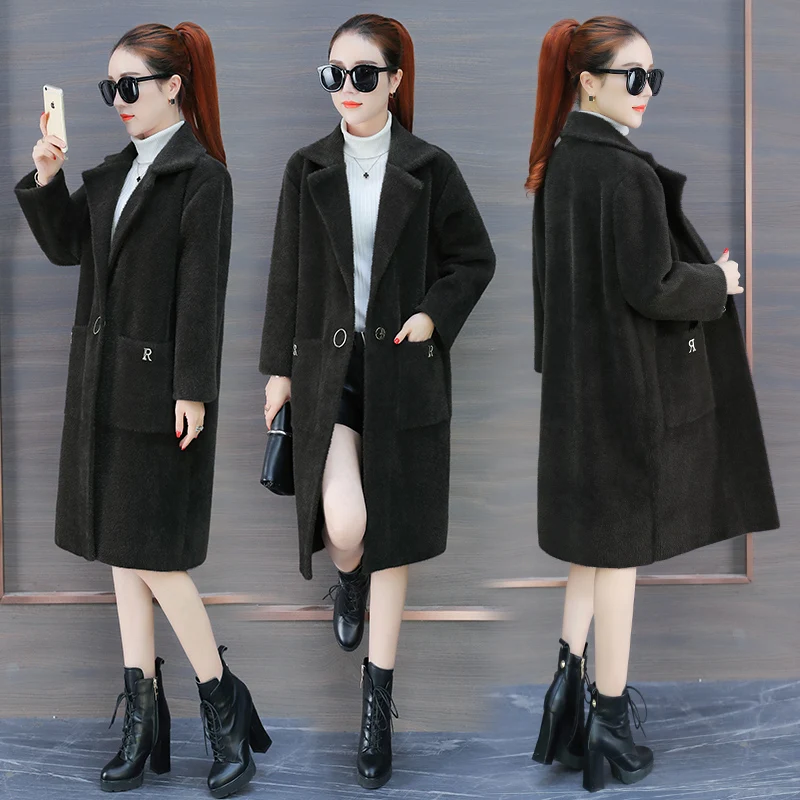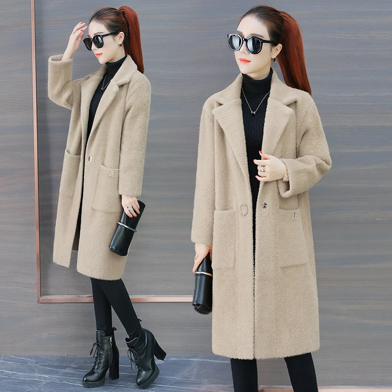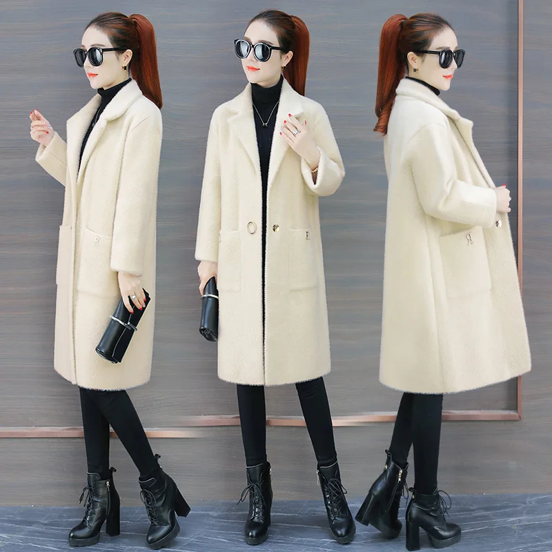 Hot Promo Imitation mink velvet jacket female medium length 2019 new winter Han edition loose thickened sweat
