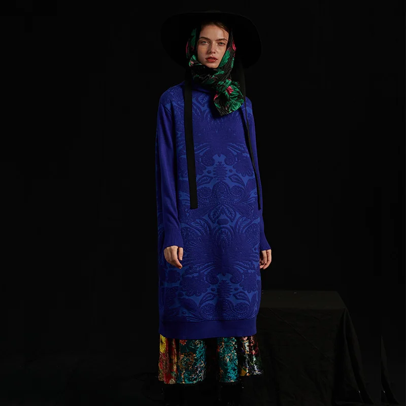Hot Promo Outline Autumn Winter Original National Style Women's Turtleneck Sweater Pure Color Pullovers Offic
