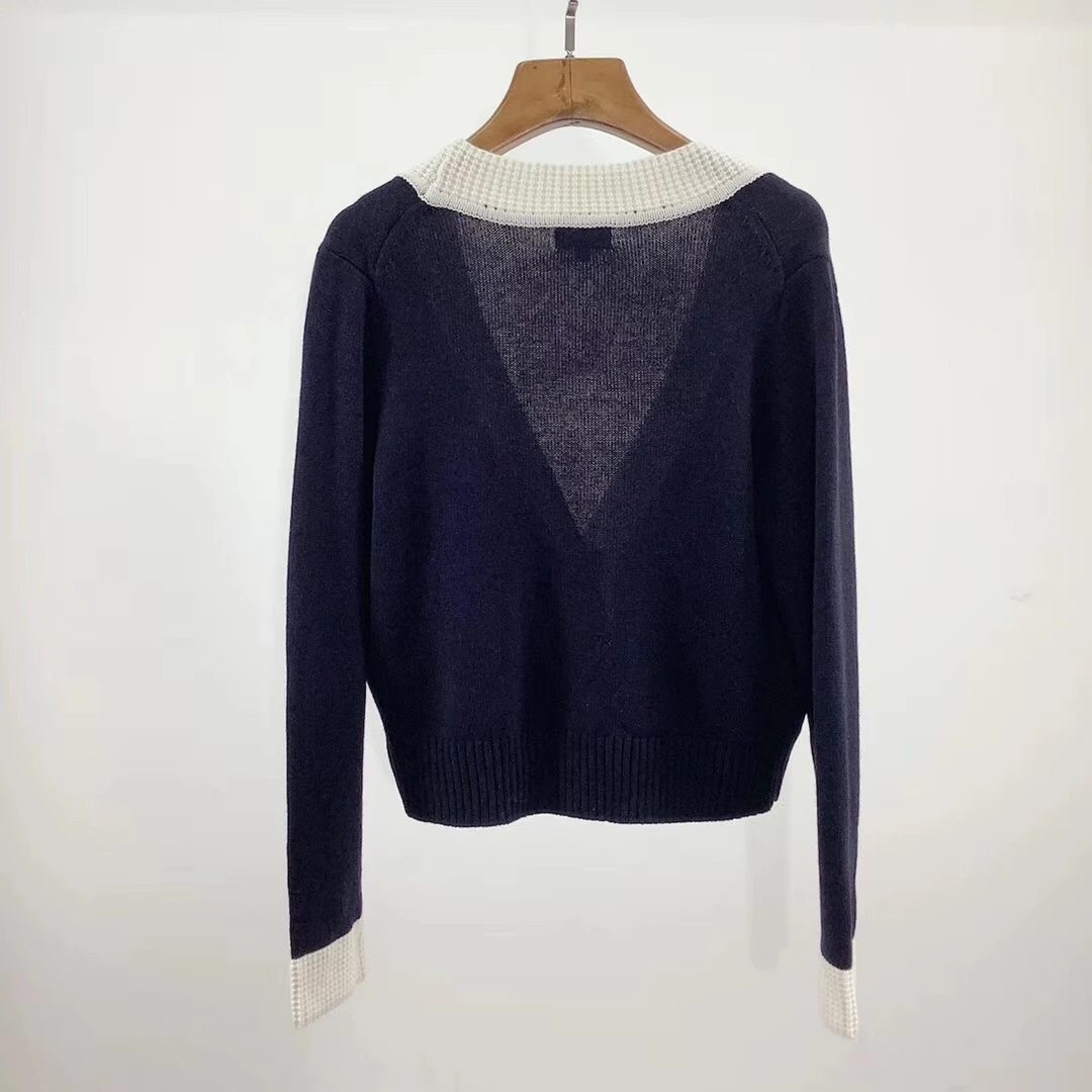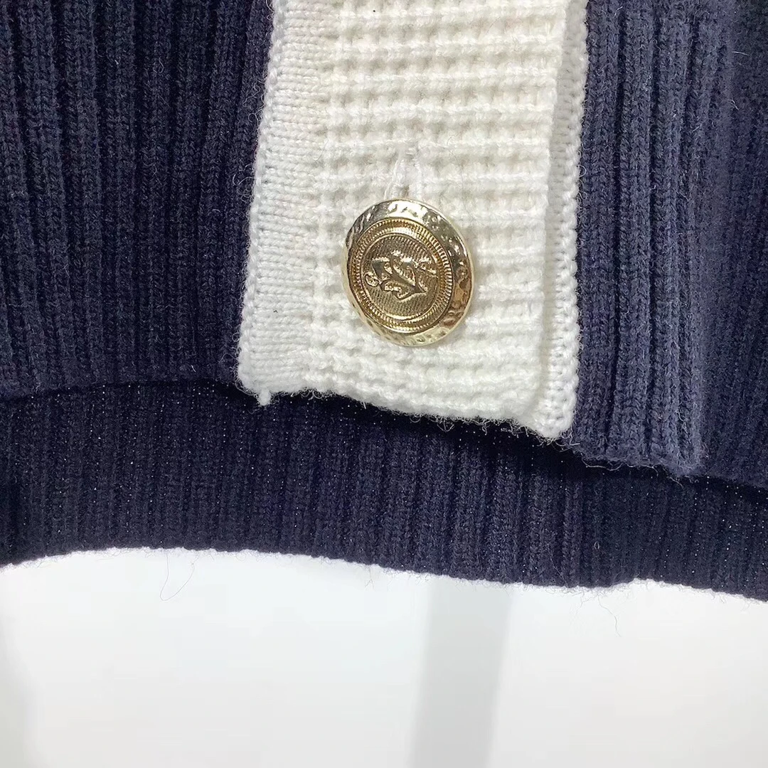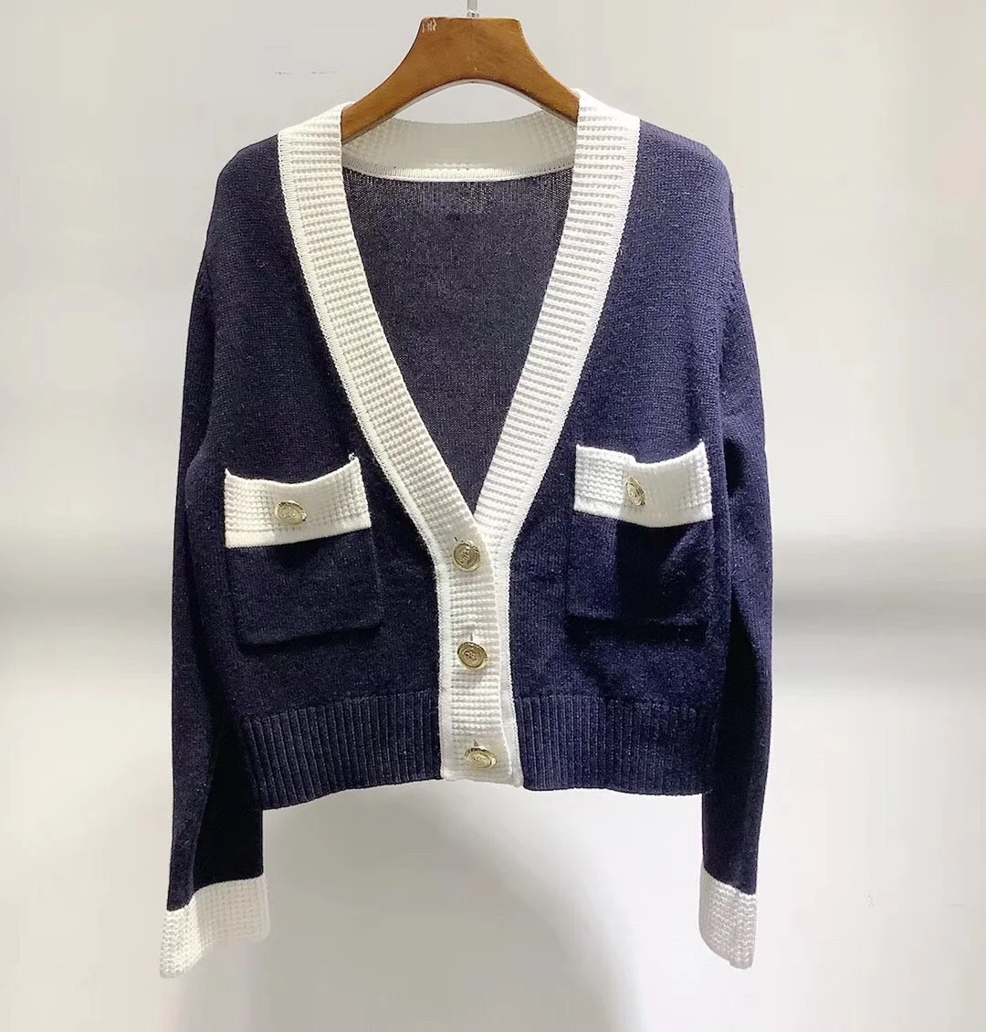 New Arrival 2019 autumn and winter V neck long sleeve small fragrant spell color high-quality trim knit cardiga