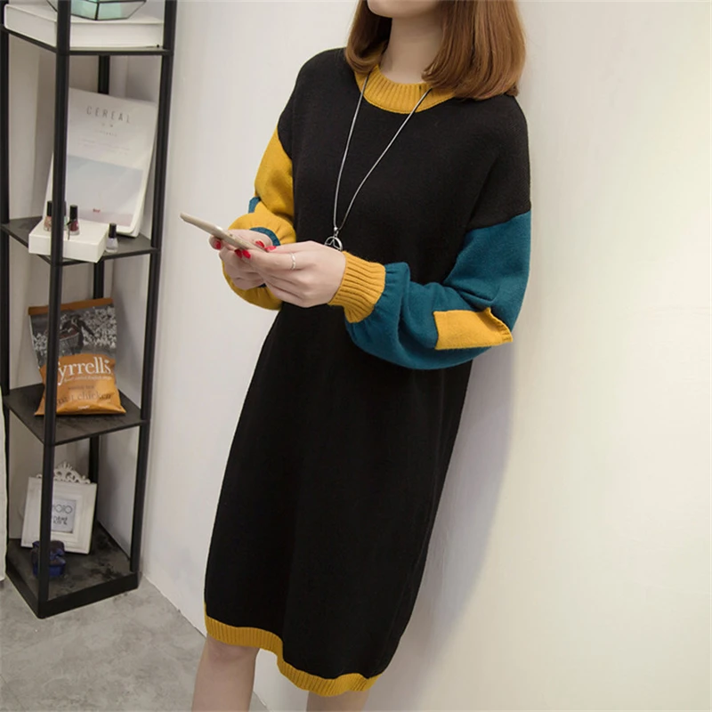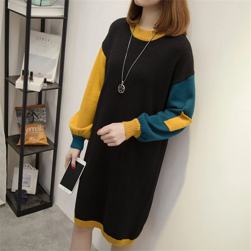 New Arrival New 4XL Women Sweater Dress 2019 Spring O- Neck Casual Loose Pullover Large Size Autumn Fashion Med