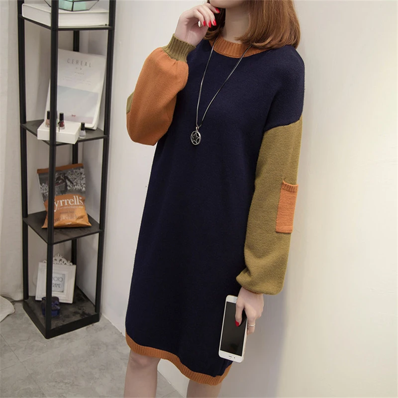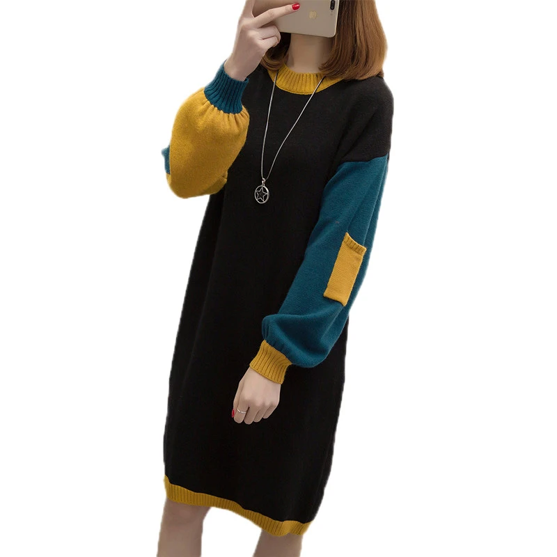 Hot Product New 4XL Women Sweater Dress 2019 Spring O- Neck Casual Loose Pullover Large Size Autumn Fashion Med