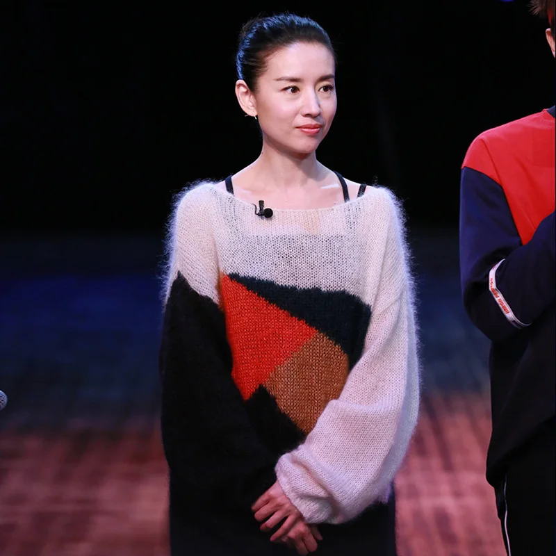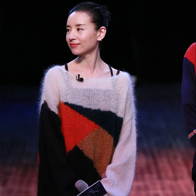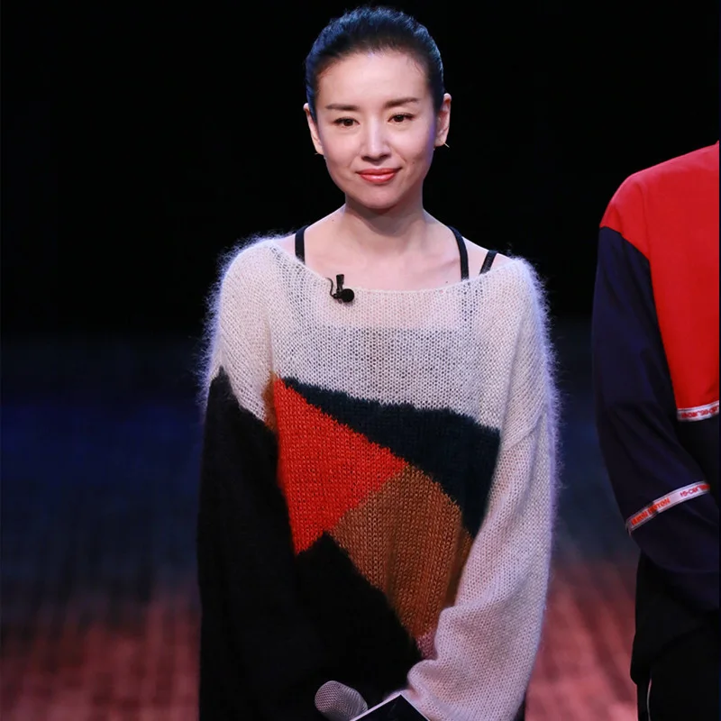 Big Sale women sweater office lady full sleeve o-neck collar pullovers patchwork winter knitted female loose