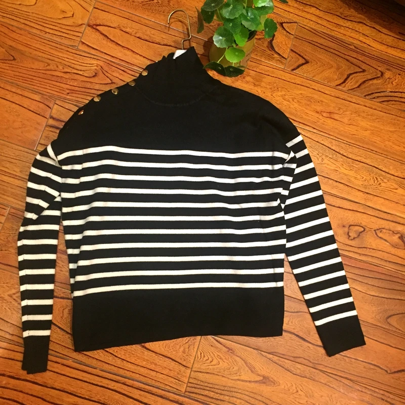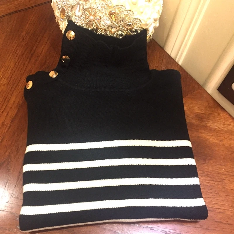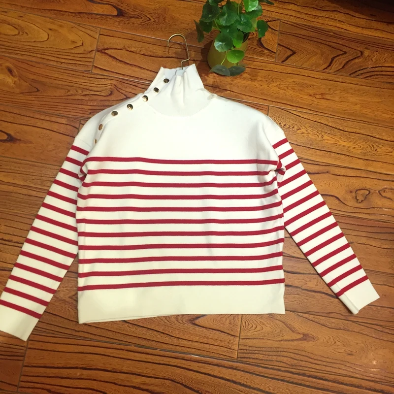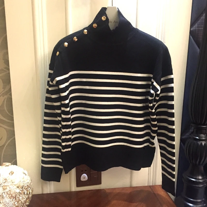 New Arrival Europe and the United States are 2018 new British style metal buckle striped sweater wool turtlenec
