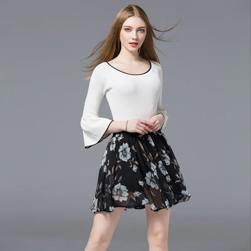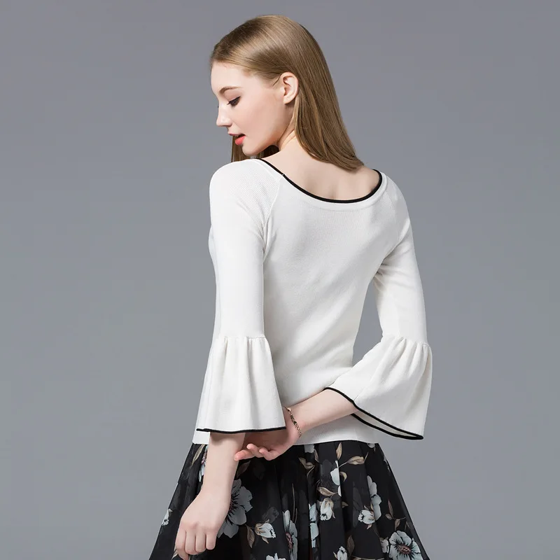 Best Price 18 Euro Style New Style Panelled All Matched Casual Jersey Round Neck Flare Sleeve Fashion Simple W