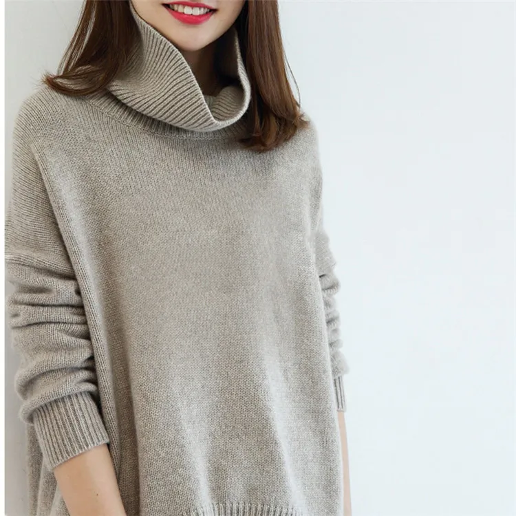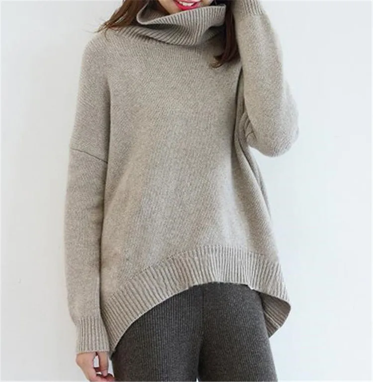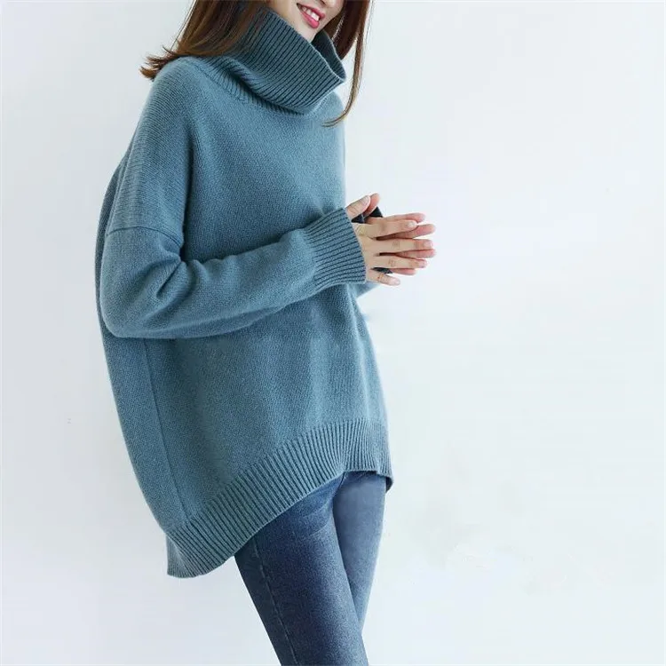 Belum ada Komentar untuk "Wholesale goat cashmere thick knit women fashion high collar long irregular hem pullover sweater solid color "