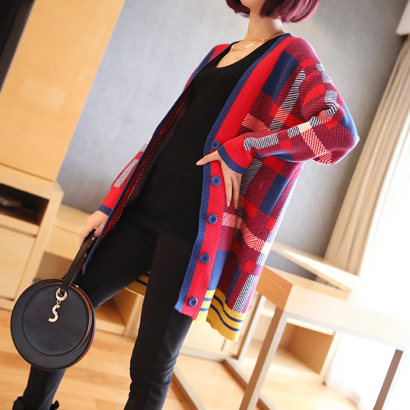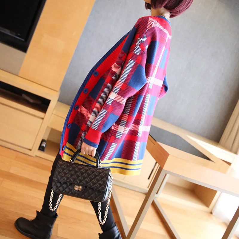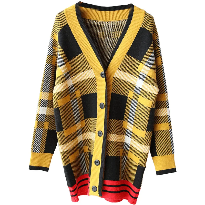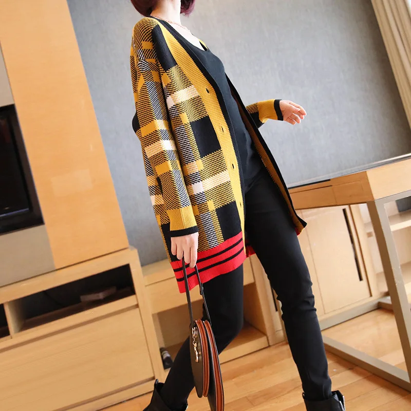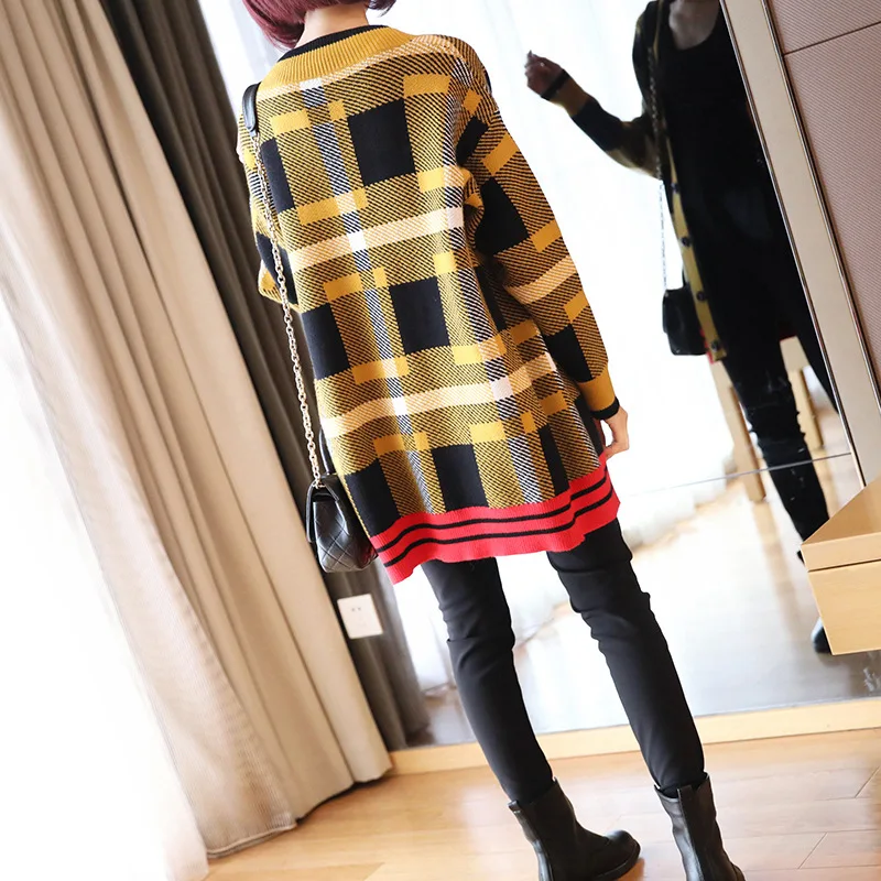 Best Price Ms. temperament plaid cardigan sweater female 2019 autumn and winter new Korean Women loose sweater