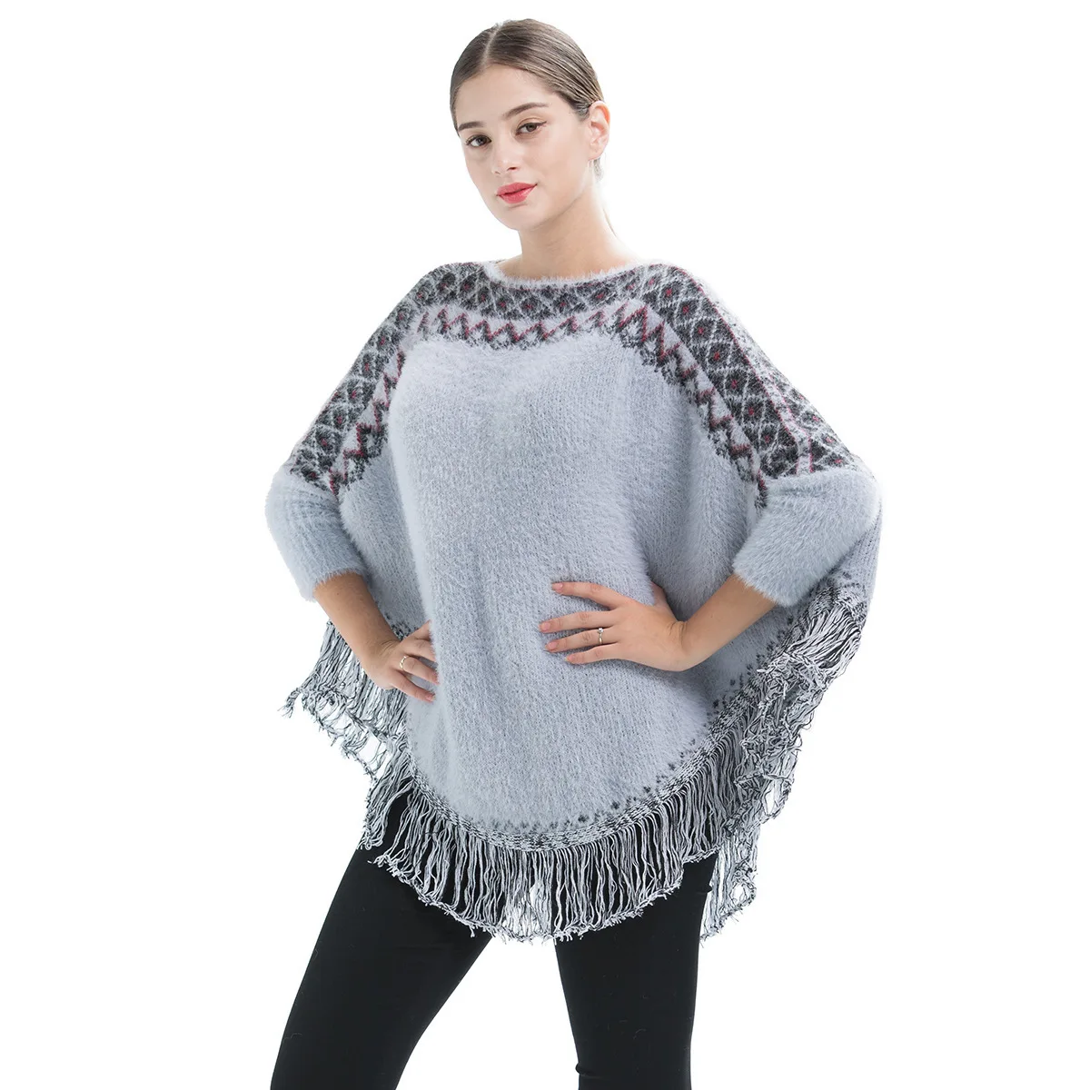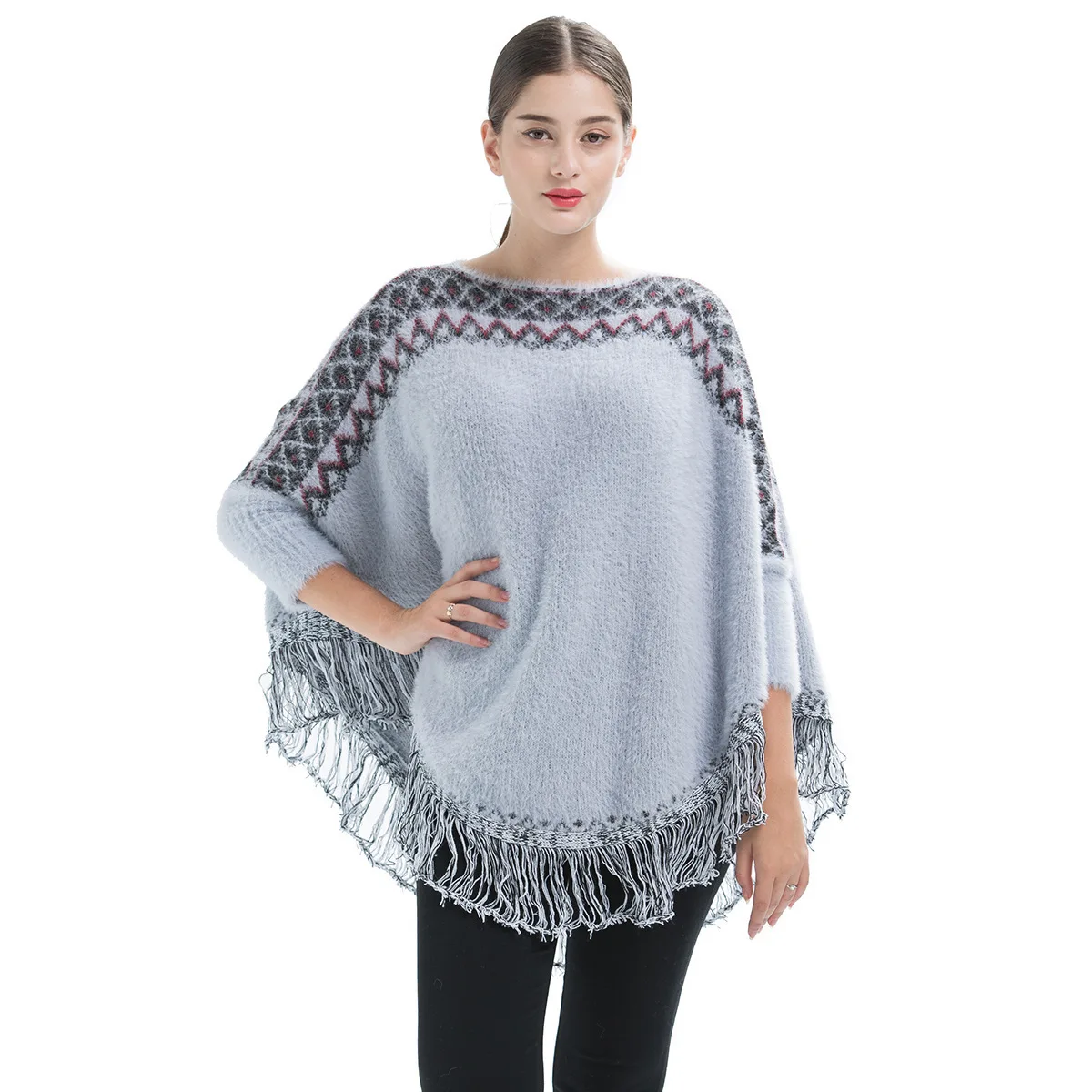 Wholesale Poncho Cotton Computer Knitted New Arrival Real Jumper Sweater Women Pattern 2019 Bat Sleeve Warm S